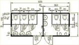 Muška strana: 2 x WC školjka, 2 x pisoar, 2 x umivaonik